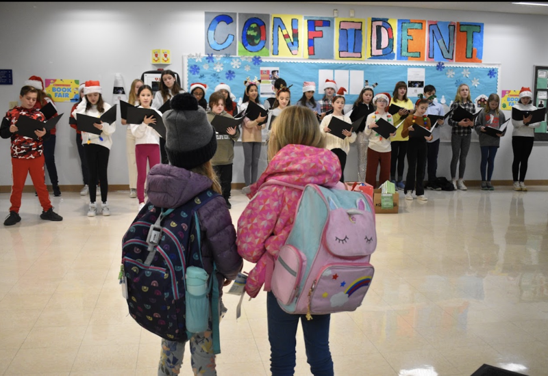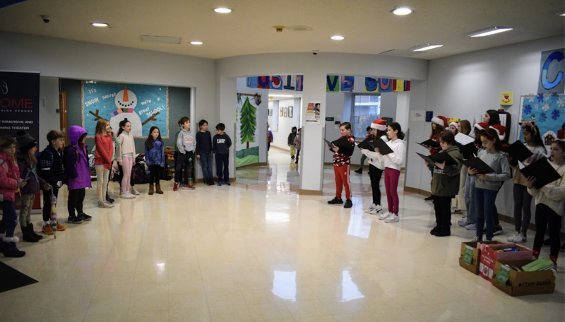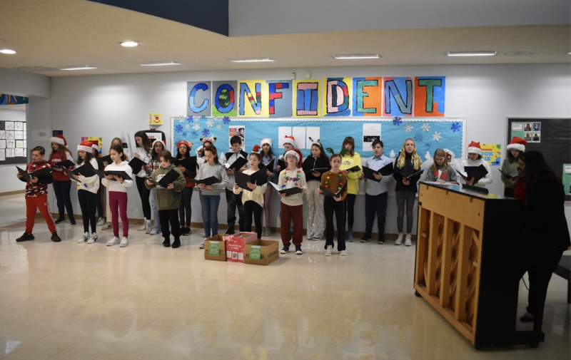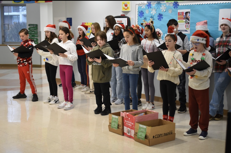 On December 16th, The 6th Grade Chorus students from Saxe Middle School visited East to bring in some holiday cheer by performing their favorite holiday songs in the East school lobby. The performance supported the student's food drive to collect donations for Filling in the Blanks, a non-profit dedicated to providing meals for children in need throughout Fairfield and Westchester County.