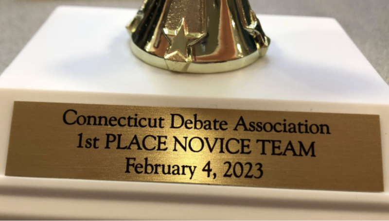 After the four rounds, trophies are awarded to the top five pairs and individual speakers in both Novice (9th and 10th grade) and Varsity (11th and 12th grade) divisions. Those who receive a trophy will qualify for state finals held on March 25th at Stamford High School.