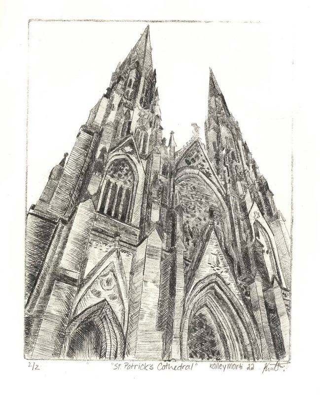 • St. Patrick's Cathedral by Kailey Marti, Printmaking Category, Gold Key Winner.