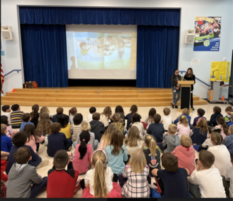 On Monday, November 28th, all grade levels were treated to a read-a-loud by local author and parent Liz Barron who has a second and fourth grader here at South School and her co-author Marion Greenl.